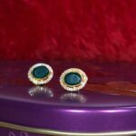 The Emerald Halo Diamond Stud Earrings are a timeless expression of elegance and refined beauty. Each earring showcases a rich emerald stone at the center, carefully framed by a circle of shimmering diamonds that enhance its natural depth and brilliance.