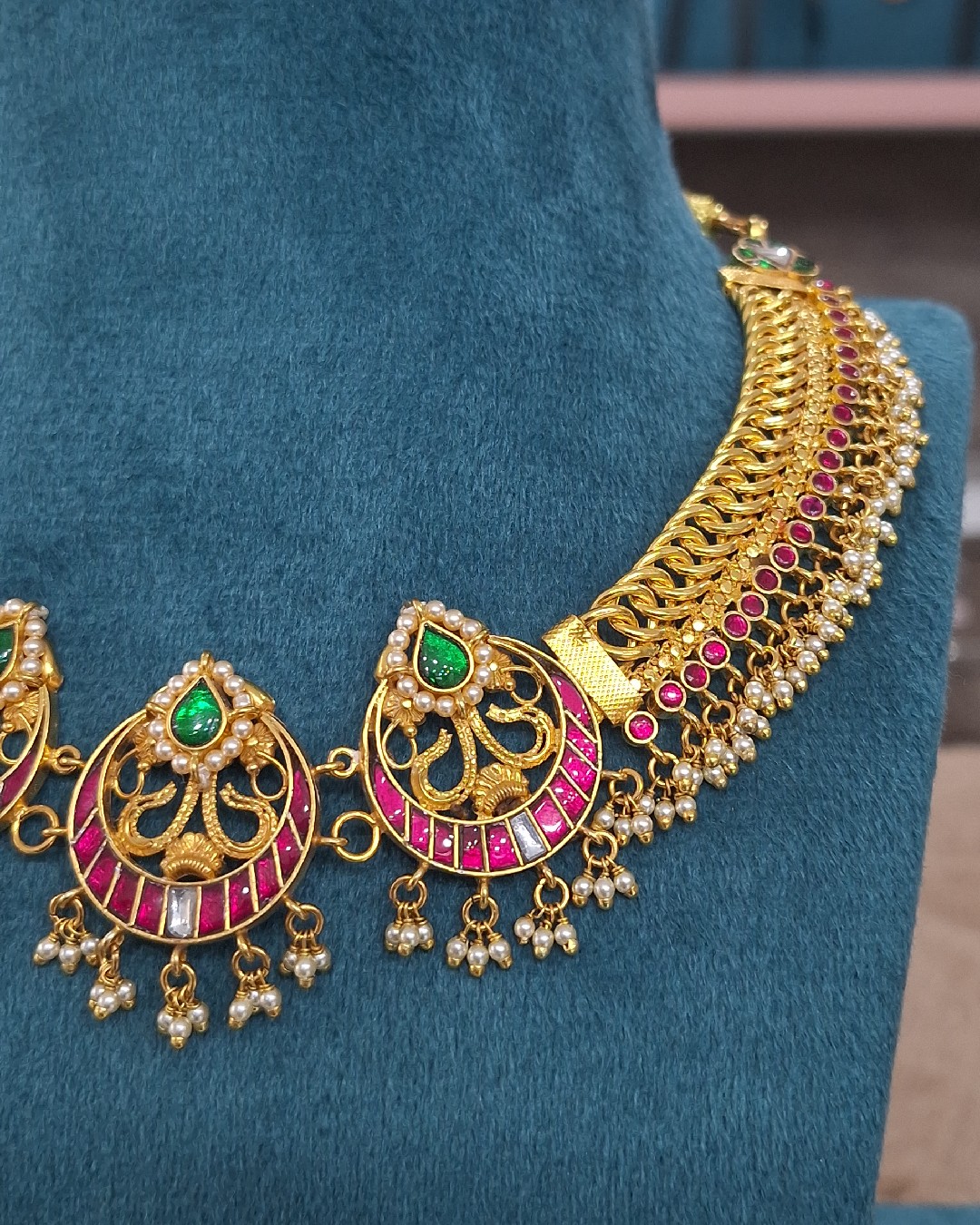 Perfect for weddings, festive occasions, and traditional gatherings, this necklace beautifully blends heritage craftsmanship with a bold yet refined aesthetic, making it a standout addition to any jewelry collection.