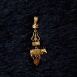 A sacred gold pendant featuring the Trishul, Nandi, and Rudraksha—symbolizing devotion, protection, and divine strength.