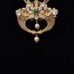 A regal crescent-style Puligoru adorned with a vibrant emerald center, dazzling stones, and elegant pearl drops for a majestic traditional look.