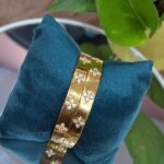 This refined gold bangle set features a sleek, polished finish enhanced with intricately placed floral motifs crafted from shimmering white stones. The minimal yet elegant design makes these bangles versatile enough for daily wear while still offering a touch of sophistication for festive and celebratory moments. Each floral detail is carefully set to create a subtle sparkle that complements the warm gold tone beautifully. Lightweight and comfortable, these bangles can be worn alone for a chic, understated look or stacked for a more luxurious statement. A timeless addition to any jewelry collection, ideal for modern women who appreciate classic elegance with a contemporary touch.