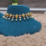 The choker is further enhanced with delicate pearl drops that add movement and charm, giving it a refined and festive appeal. Its structured yet comfortable design sits beautifully on the neckline, making it an ideal choice for weddings, festive occasions, and cultural celebrations.
