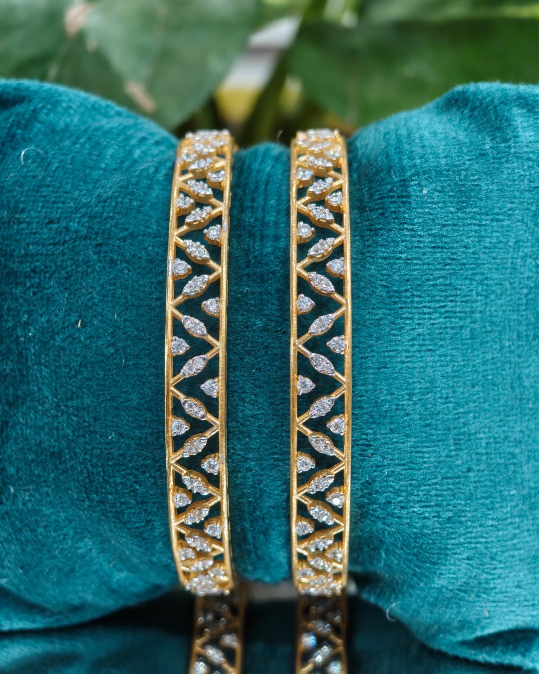 Inspired by the beauty of nature, these Leaf Vine Gold Bangles showcase a finely crafted openwork design with intricate vine and leaf motifs. The detailed pattern creates a light, airy look while maintaining a refined and elegant finish.