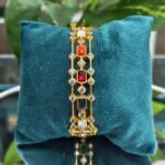 Each colored stone is complemented by finely set round accent stones, adding brilliance and balance to the design. The geometric layout gives the bracelet a contemporary edge while maintaining its traditional significance.